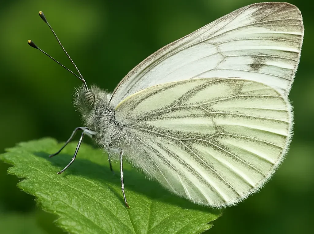 - Na spodniej stronie skrzydeł widoczne żyłkowanie, czasami z zielonkawym odcieniem, doskonale maskuje motyla podczas odpoczynku na liściach — stąd angielska nazwa green-veined white.