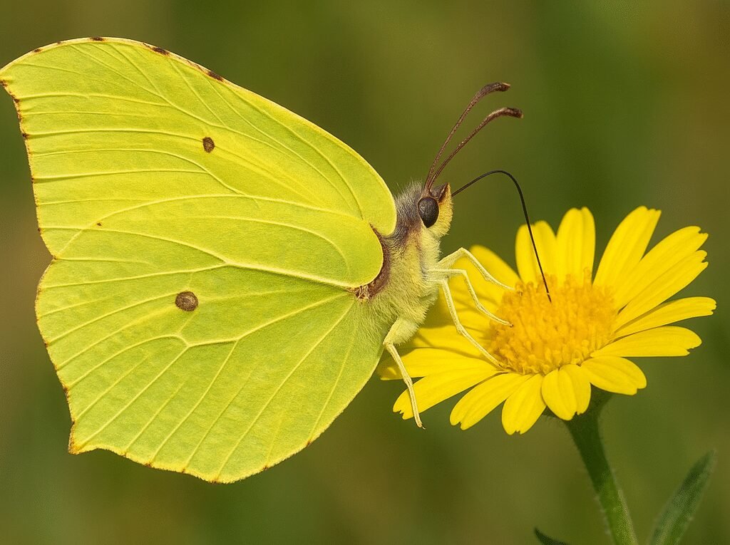 Cytrynek, naukowo określany jako Gonepteryx rhamni, to motyl z rodziny pierścieniakowatych (Pieridae). Jego sylwetka jest łatwo rozpoznawalna: skrzydła mają wydłużony, lekko zaokrąglony kształt przypominający liść, z wyraźnie zarysowanymi żyłkami. Dzięki temu, gdy motyl osiada na roślinach, jest trudniej dostrzegalny przez drapieżniki.