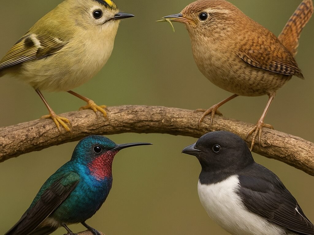 Wśród ptaków z rzędu passeriformes również znajdujemy gatunki o niewielkich rozmiarach. Do najbardziej znanych należą: