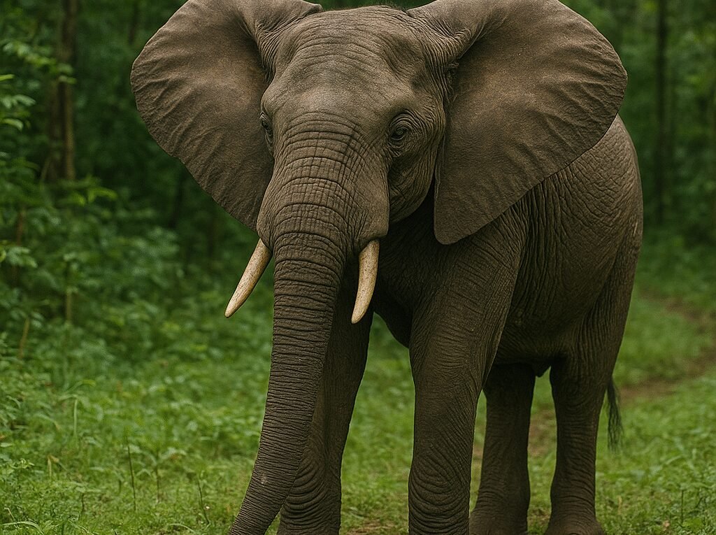 Słoń leśny prowadzi życie silnie związane z lasem — ma inną strategię żerowania, strukturę społeczną i rytm aktywności niż jego krewniak z otwartych przestrzeni.