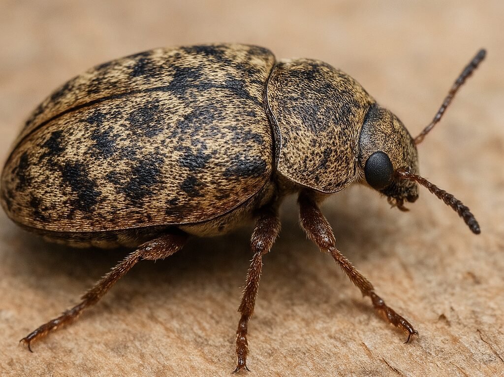 - Tułów: silnie uwypuklony, z twardym przedtułowiem (pronotum) i wyraźnymi pokrywami skrzydeł (elytra), często z drobnymi plamami lub cętkowaniem w odcieniach brązu, szarości i czerni.