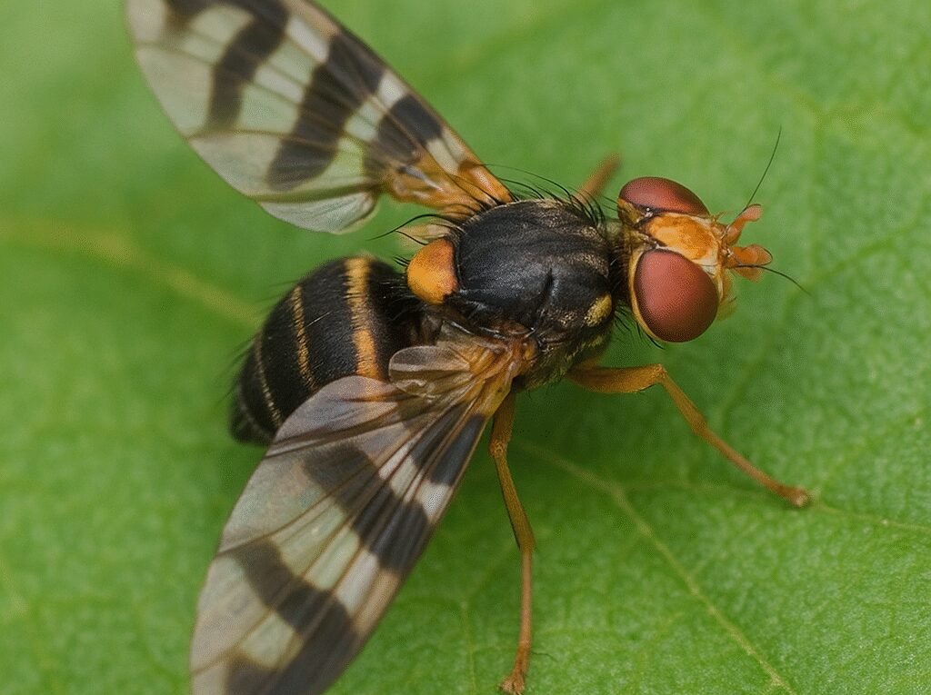- Imago (dorośli): Wiosną i wczesnym latem, zależnie od warunków klimatycznych, z pupariów wylęgają się dorosłe muchówki. Czas pojawu dorosłych koreluje z dojrzewaniem owoców — to kluczowa synchronizacja, która umożliwia samicom składanie jaj w świeże, jadalne owoce.