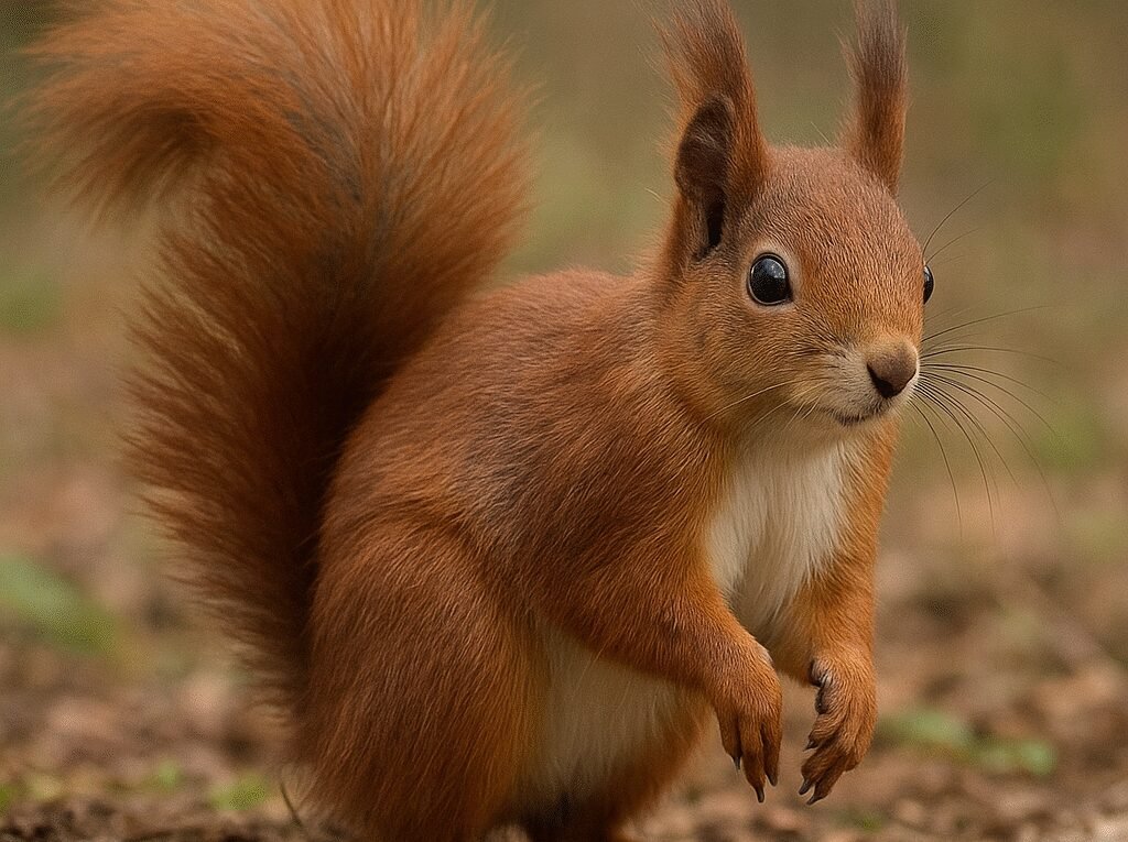 - Budowa: ostre siekacze, zwinne łapy, pazury do wspinaczki, puchaty ogon pełniący kilka funkcji.