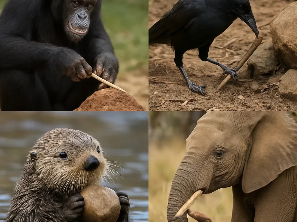 Wśród innych ssaków, u których obserwowano narzędzia, wymienia się m.in. delfiny używające gąbek morskich do ochrony pyska podczas żerowania na dnie, a także niektóre gryzonie wykorzystujące elementy otoczenia do budowy skomplikowanych schronień. Te przykłady pokazują, że zdolności narzędziowe nie są wyłącznie domeną naczelnych, lecz pojawiają się niezależnie w wielu liniach ewolucyjnych.